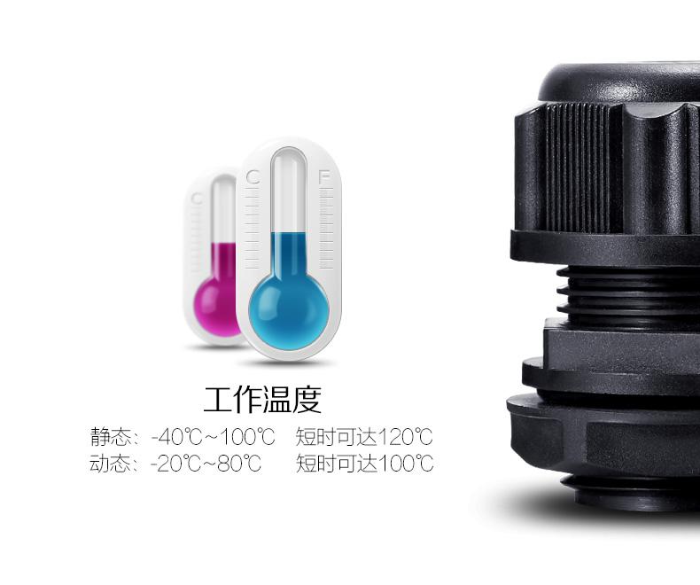 工作溫度: 靜態:-40℃~+100℃,短時可達+120℃; 動態:-20℃~+80℃, 短時可達+100℃。